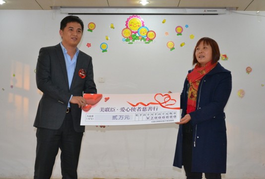 活动结束,石家庄美联臣副总陈铭特向孩子们捐出20000元慰问款,以帮助孩子们健康快了的成长。陈总表示:以后一定经常来看望孩子们,希望孩子们能够健康快乐的成长。
