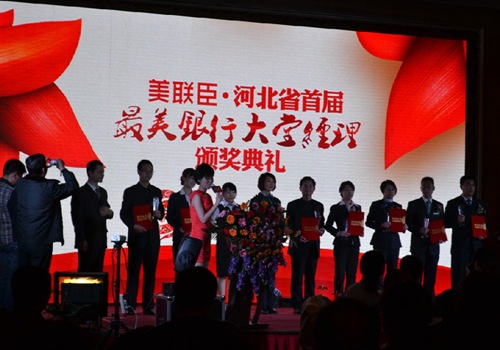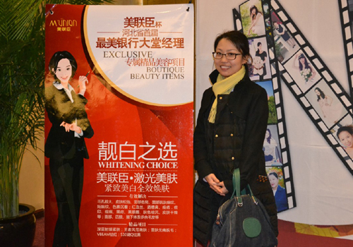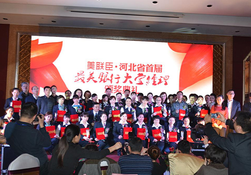 美联臣杯河北省首届最美大堂经理评选活动历时两个月,于2013年1月9日收官。来自全省23家银行机构的近300位银行大堂经理踊跃参加。从活动开始到结束,经过初期筹备、初选、终选等环节,本着美联臣“做最美的自己”这一企业理念,网友们通过网络、短信、微博电话四种方式选出了自己心目中的20位“最美银行大堂经理” 和 30位“优秀银行大堂经理”。