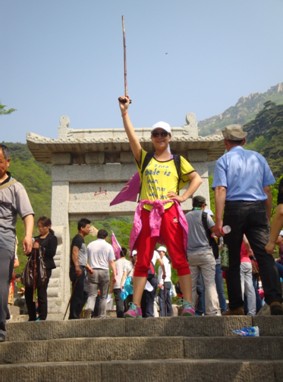 这位姐姐拉出了勇得第一的架势,第一名舍我其谁!泰山峰峦雄伟、山势险峻,但是并没有打击大家攀爬的信心。