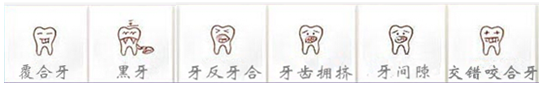 龅牙、虎牙、老鼠牙、牙齿拥挤、覆合牙、牙反牙和、交错咬牙合、牙间隙