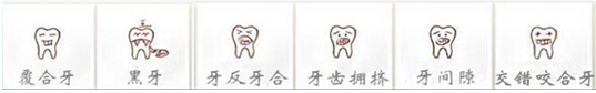 牙齿拥挤、覆合牙、牙反牙和、交错咬牙合、牙间隙